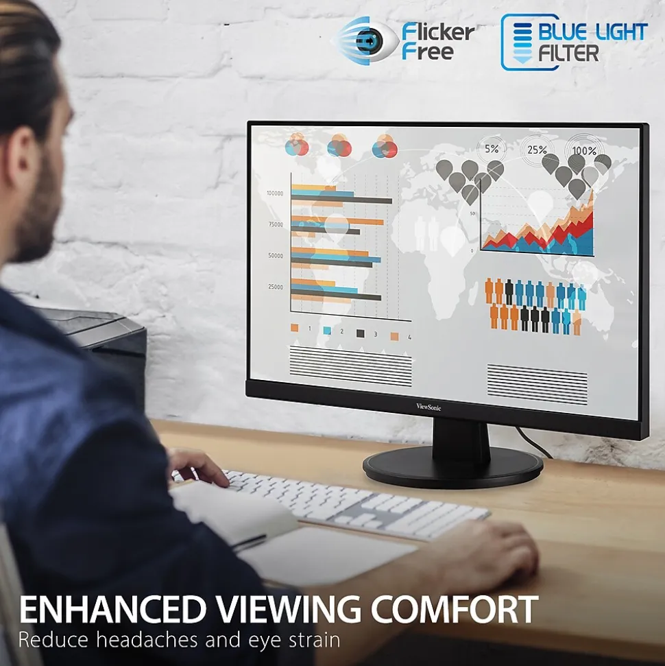 - ENHANCED VIEWING COMFORT: Flicker-Free technology and Blue Light Filter for reduced eye fatigue