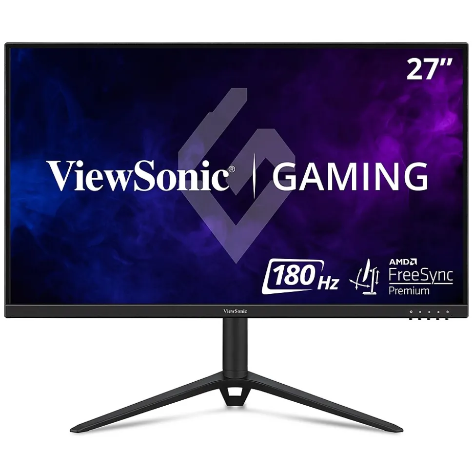 The ViewSonic ™ VX2728J is a 27” Full HD IPS monitor built with the speed and performance that gamers need. Featuring a 180Hz refresh rate and AMD FreeSync™ Premium technology, this monitor virtually eliminates screen tearing and stuttering for fluid game play during fast-paced action scenes. An ultra-fast 0.5ms (MPRT) response time also provides smooth screen performance free from blurring or ghosting. A fully adjustable ergonomic stand and a three-sided borderless design maximizes viewing size and an optimized set-up while minimizing frame distractions. Flexible connectivity options such as DisplayPort and HDMI allow you to connect to your PC and gaming console.