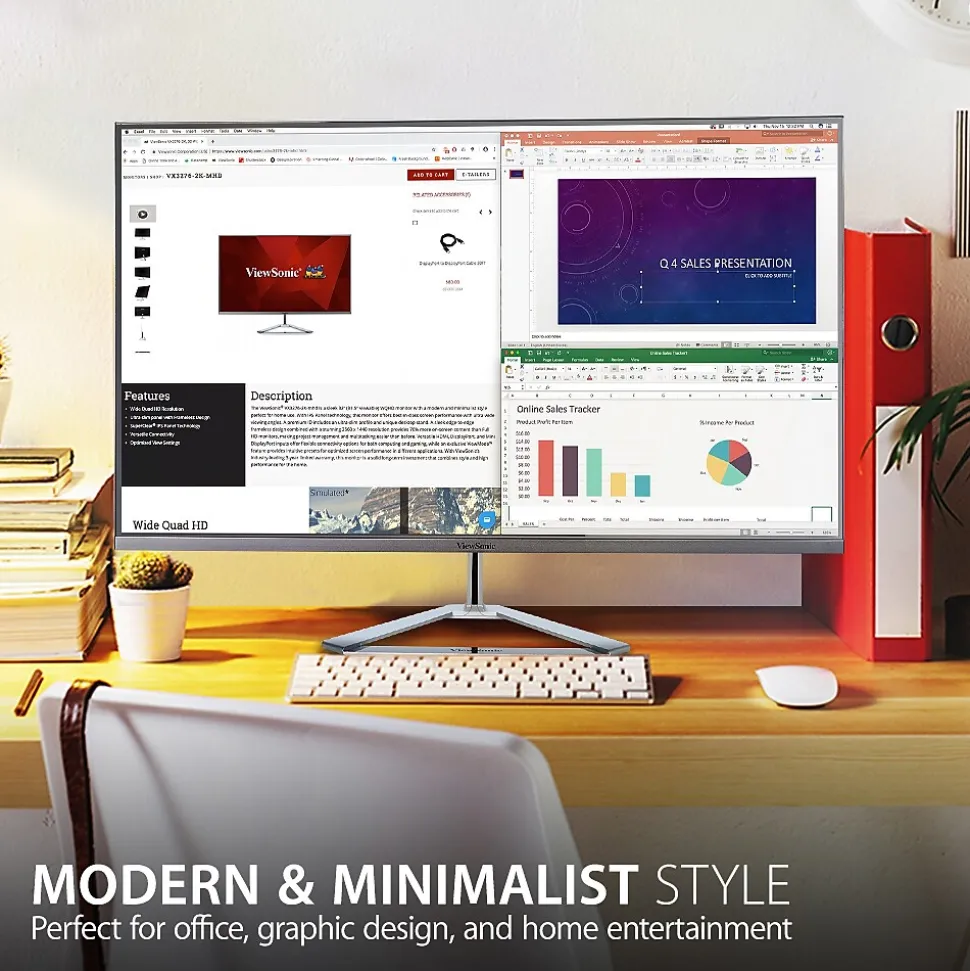 The ViewSonic VX3276-2K-mhd is a sleek 32-Inch (31.5 viewable) WQHD monitor with a modern and minimalist style perfect for home use. With IPS Panel technology, this monitor offers best-in-class screen performance with ultra-wide viewing angles. A premium ID includes an ultra-slim profile and unique desktop stand. A sleek edge-to-edge frameless design combined with a stunning 2560 x 1440 resolution provides 70% more on-screen content than Full HD monitors, making project management and multitasking easier than before. Versatile HDMI, DisplayPort, and Mini DisplayPort inputs offer flexible connectivity options for both computing and gaming, while an exclusive ViewMode feature provides intuitive presets for optimized screen performance in different applications. With ViewSonic’s industry-leading 3-year limited warranty, this monitor is a solid long-term investment that combines style and high performance for the home.
