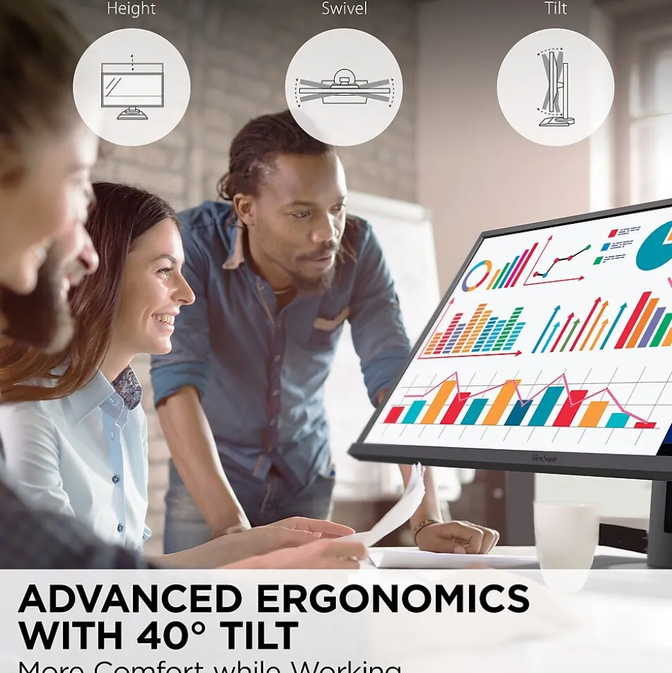 - ERGONOMIC STAND: Advanced ergonomics (40-degree tilt, swivel, and height) for all-day comfort