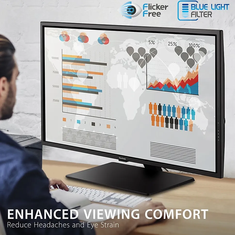 - ENHANCED VIEWING COMFORT: Flicker-Free technology and Blue Light Filter for reduced eye fatigue