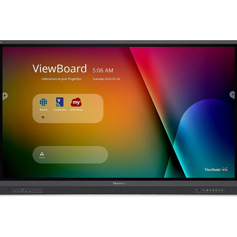 The ViewSonic ViewBoard IFP6552-2ED 65″ UHD 4K Touchscreen Commercial Monitor is an interactive flat panel display with Android EDLA certification and built-in whiteboard technologies for immersive learning in classroom environments. With a high-accuracy touchscreen and intelligent palm recognition technology, the IFP6552-2ED delivers an intuitive digital whiteboard experience for all users.Featuring UHD 4K resolution, a powerful 45W stereo soundbar with a built-in subwoofer, and eight-microphone array, this ViewBoard display delivers optimal images and sound for everyone in the classroom as well as those learning remotely. With the integrated myViewBoard software ecosystem, this display enables teachers to access legacy files from the cloud as well as build new interactive lessons. IT directors can confidently manage files from a secure cloud network, while curriculum directors will be pleased knowing that this software easily integrates with online resources. Full network functionality is possible with the wired RJ45 LAN input or the included, optional Wi-Fi adapter module.
