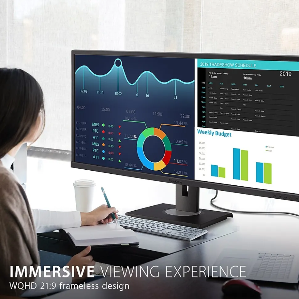 - FLEXIBLE CONNECTIVITY: The VG3456 supports PC, Mac and more with USB-C, RJ45, HDMI, DisplayPort, USB inputs