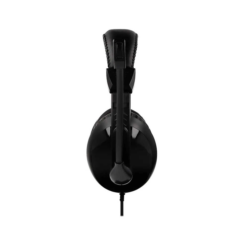 - Headset features an over-the-ear design with comfortable synthetic leather earcups and headband; comes in black