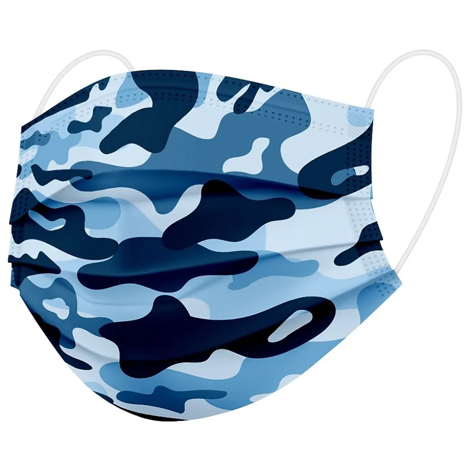 - Offers full coverage of the nose and mouth and comes in blue camo