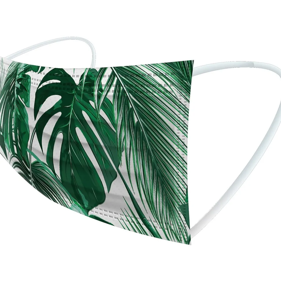 - Masks feature assorted spring designs; an adjustable metal wire runs along the top as a nose clip