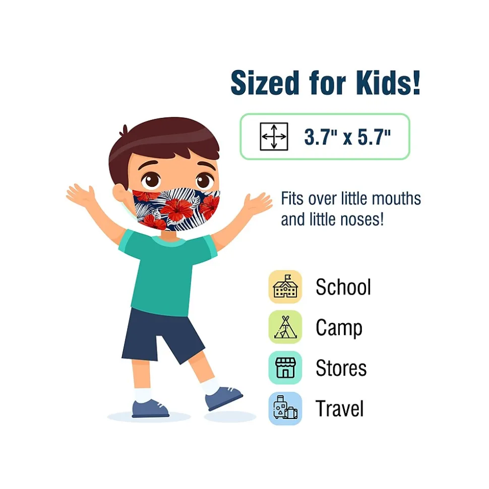 - Sized at 3.7″ x 5.7″, the masks fit comfortably on boys and girls, even toddlers