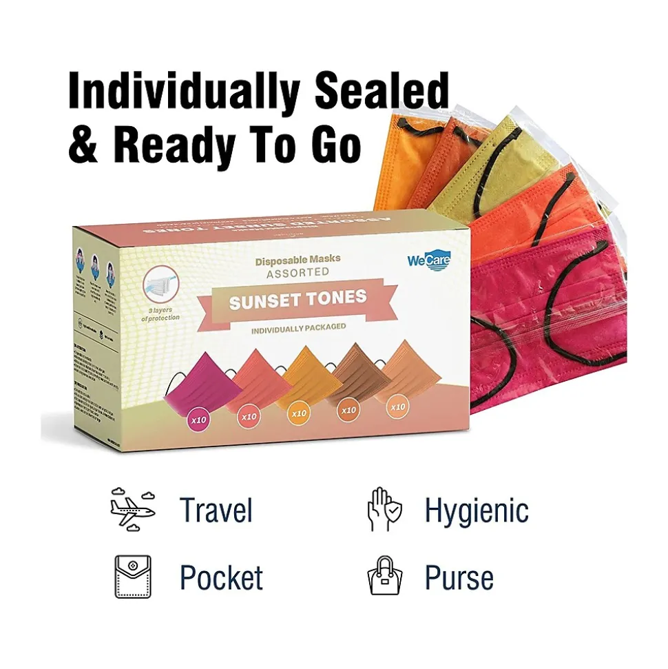 - Perfect for everyday wear; an adjustable wire runs along the top to serve as an adjustable nose clip; the masks come in assorted sunset tones