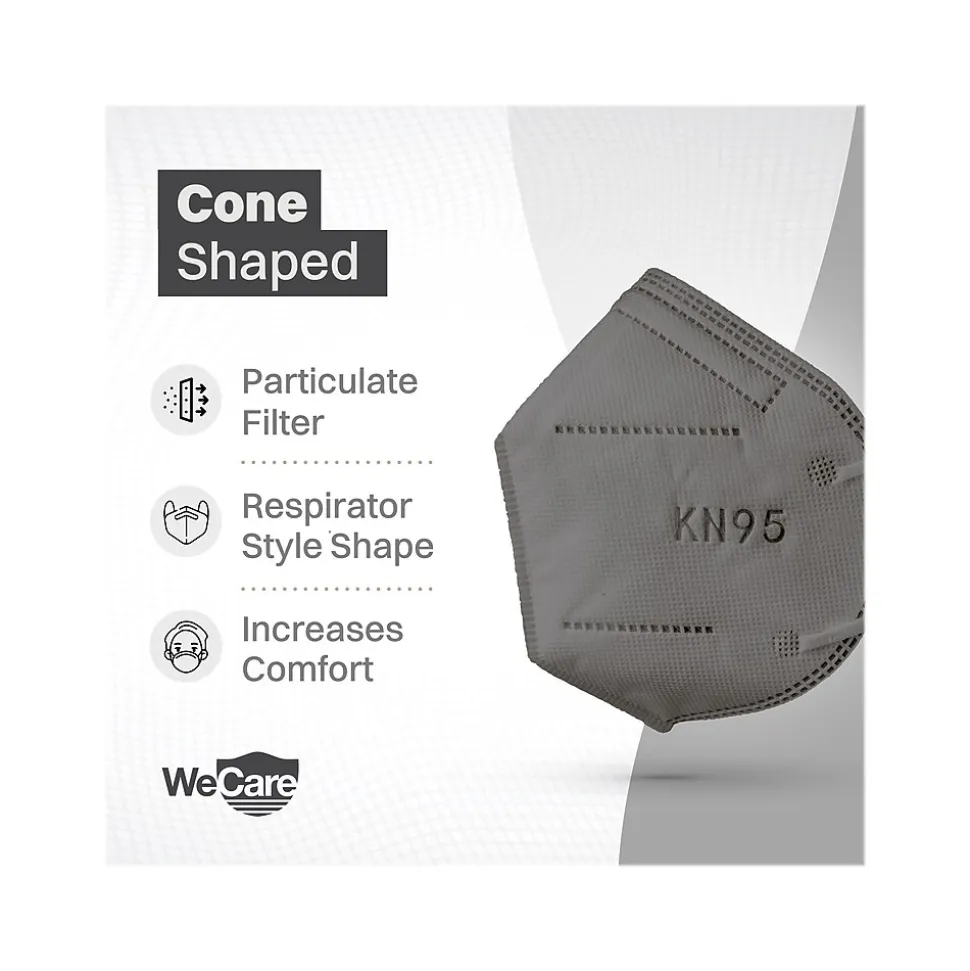 This protective disposable face mask by WeCare is comfortable, breathable, and foldable. The cone-shaped mask offers 5-ply protection. The elastic fabric completely fits the face. The inner layer with soft materials ensures comfortable wearing experience. Very effective and quick to put on and take off: flexible and easy-to-shape bridge easily fits on the nose with a minimum gap. Suitable for different face shapes. Individually packaged by the manufacturer for added protection and sanitary use. Nonreusable and not for medical use.