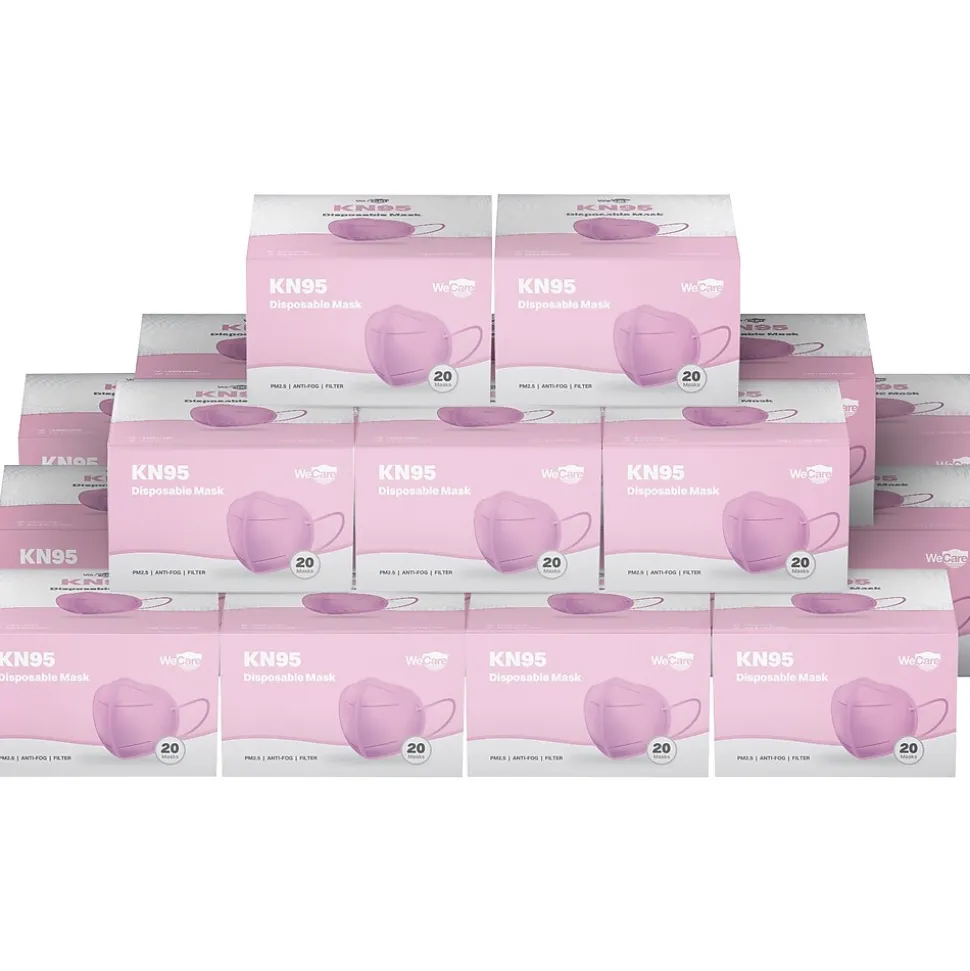 These protective disposable face masks by WeCare are comfortable, breathable, and foldable. The cone-shaped masks offer five-ply protection. The elastic fabric completely fits the face. Inner layer with soft materials contacts your face for comfortable user experience. Suitable for different face shapes. Each mask is individually packaged from the manufacturer for added protection and sanitary use.
