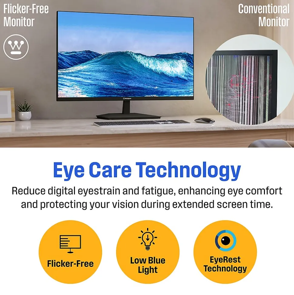- EYE PROTECTION: The EyeRest Technology helps reduce digital eye strain and fatigue. This computer monitor is flicker-free, anti-glare, and is equipped with low blue light and color temperature settings, all designed to enhance your eye comfort and to protect your vision during prolonged screen time.
