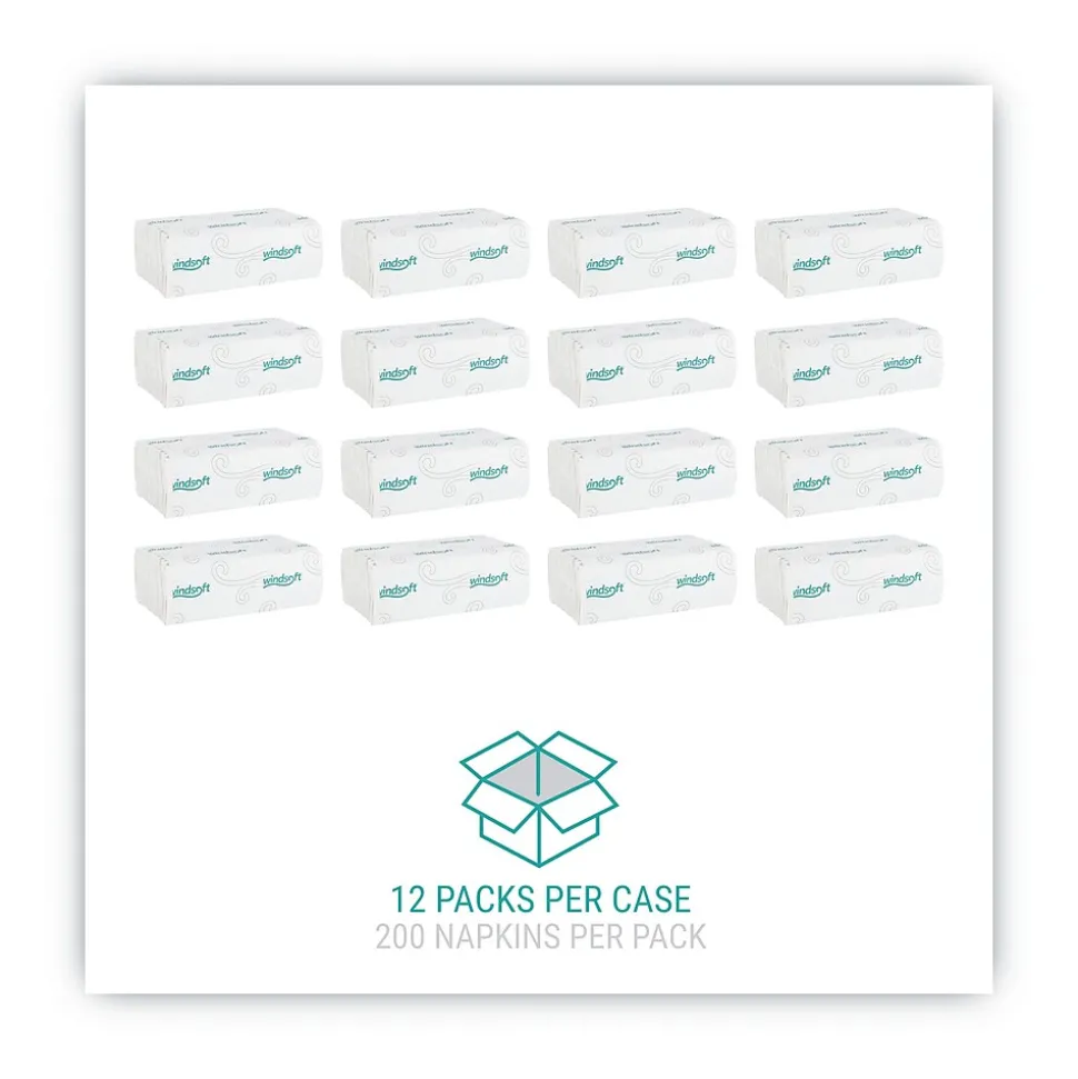 Windsoft® Folded Paper Towels, Embossed, 1-Ply, 2,400/Ct, 200 Sheets per Pack, White, 10-1/10 x 13-1/5″ sheet size