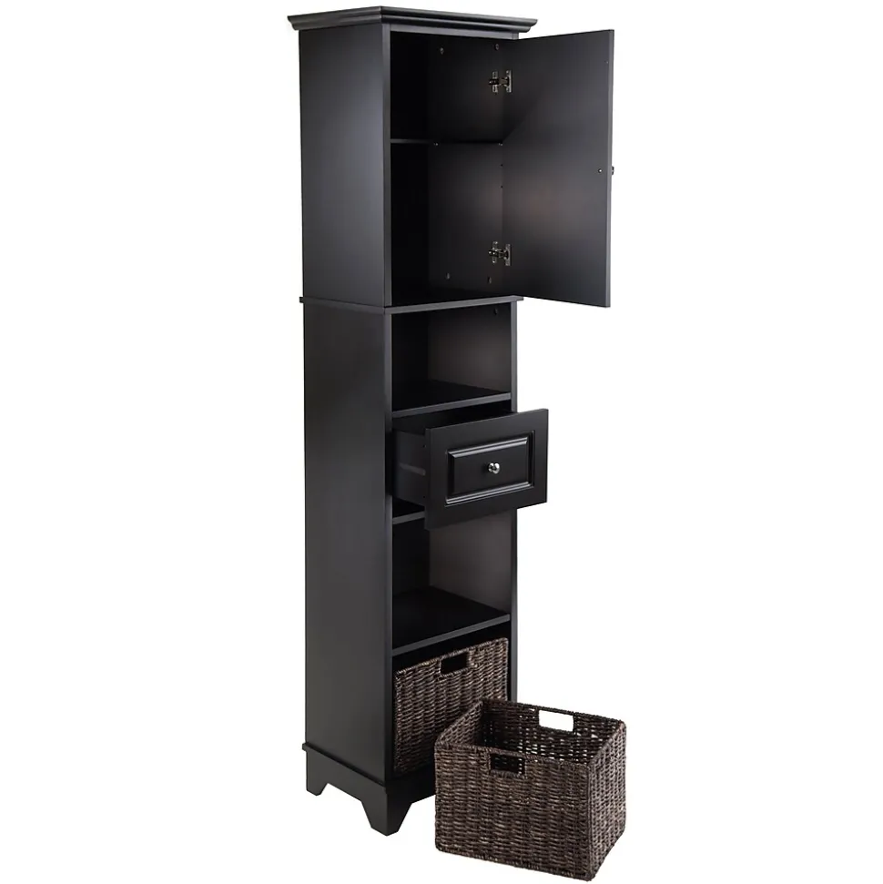 Organizing your personal effects and daily supplies becomes easier with a good storage accessory. With the “Winsome 20618 Cabinet with Baskets, Black”, you can easily keep your supplies and personal effects in one place for easy accessibility. This unit is built from high-quality wood and can withstand years of use. The 3 shelves of the cabinet can be used to store essentials items thus reducing clutter and maximizing space. Available in black, this accessory complements all types of decor. Its black finish gives this storage accessory a smart look. Measuring 70.87″H x 18.11″W x 12.99″D, this unit provides ample storage space. Ample storage space and clean lines make this storage unit ideal for storing your supplies and optimizing your space.