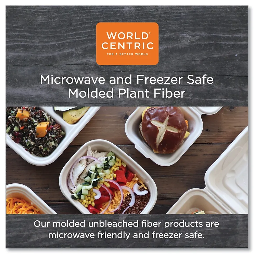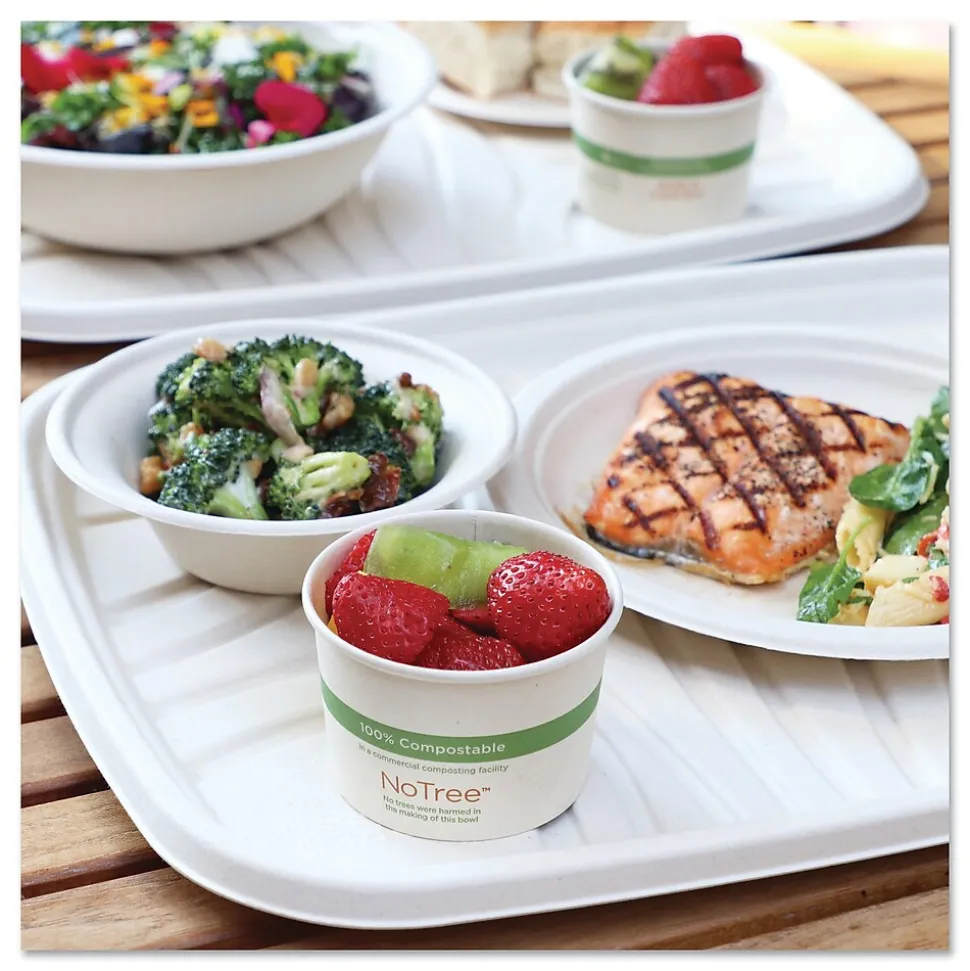 Made from unbleached plant fiber. Soak proof, freezer safe, and contain no wax or plastic lining. For use with hot or cold food items. Great for restaurants, delis, grocery stores and schools. 100% compostable in two to four months in a commercial composting facility. Gluten free.