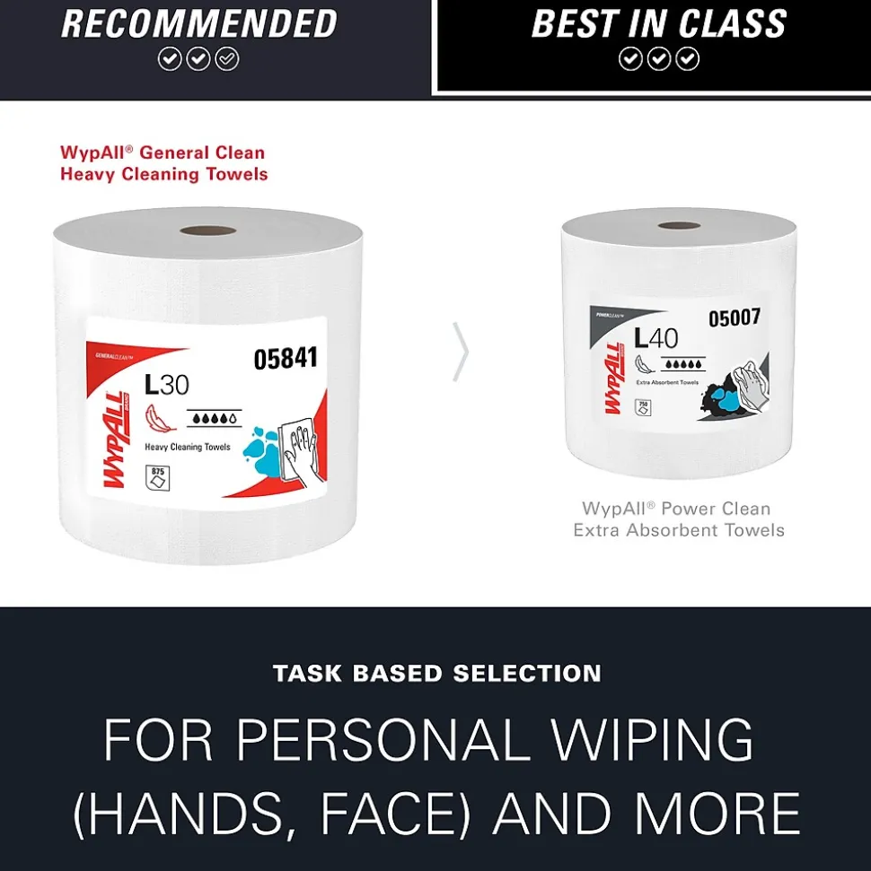 - 875 Sheets/Roll; 1 Jumbo Roll of WypAll® GeneralClean™ L30 Heavy Duty Cleaning Towels/Case; 875 Sheets/Case; White; Strong and Soft Towels