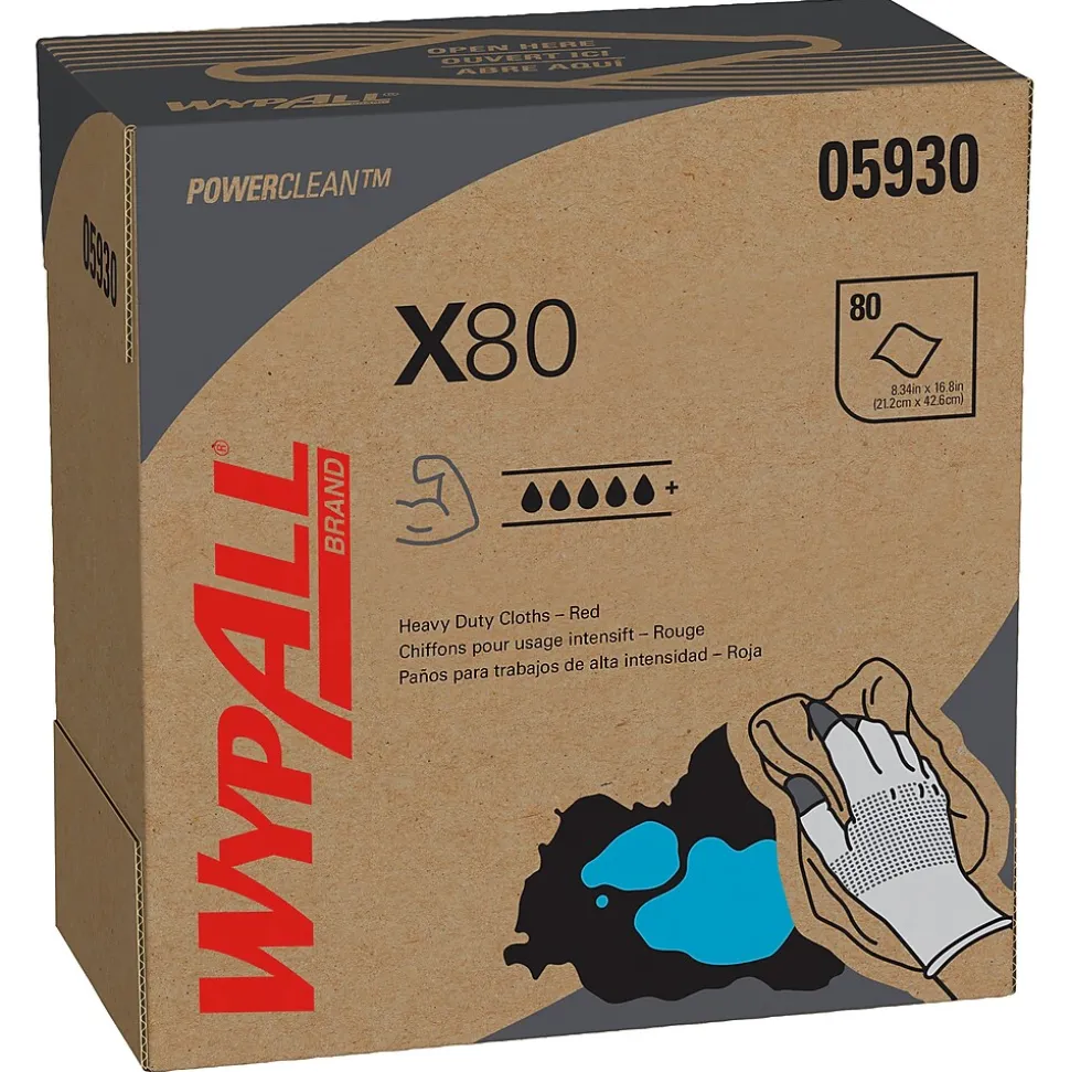 - 80 Sheets/Box; 5 Boxes of WypAll® PowerClean™ X80 Heavy Duty Cloths/Case; 400 Sheets/Case; Red; Pop-Up Box; Extended Use Towels
