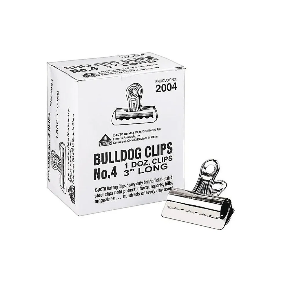 Keep papers bound together neatly with these bulldog clips. Featuring a 3-inch length and sturdy metal construction, these X-ACTO #4 bulldog clips offer increased durability and allow you to easily contain large stacks of paperwork at once.