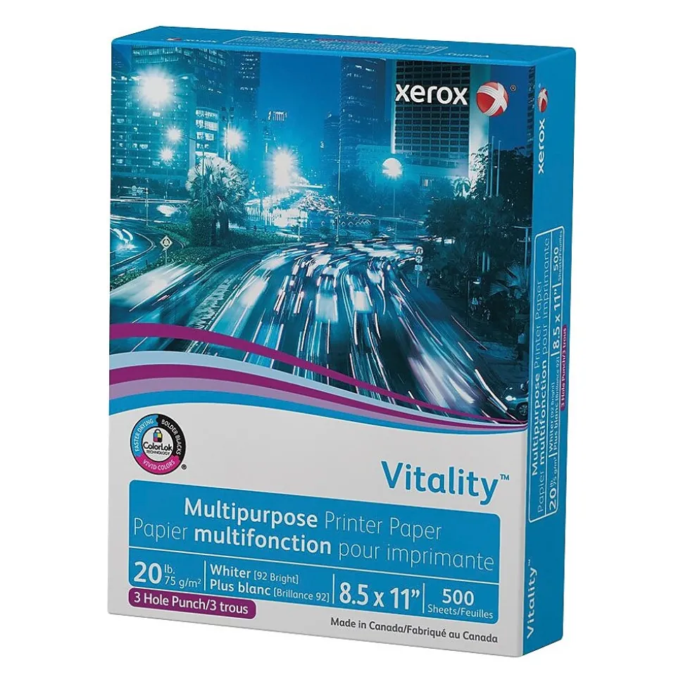 Xerox® Vitality® Multipurpose Printer Paper is a versatile paper, good for most jobs. It’s perfect for home and office documents with a crisp, professional look and features a whiter 92 GE brightness and higher opacity.