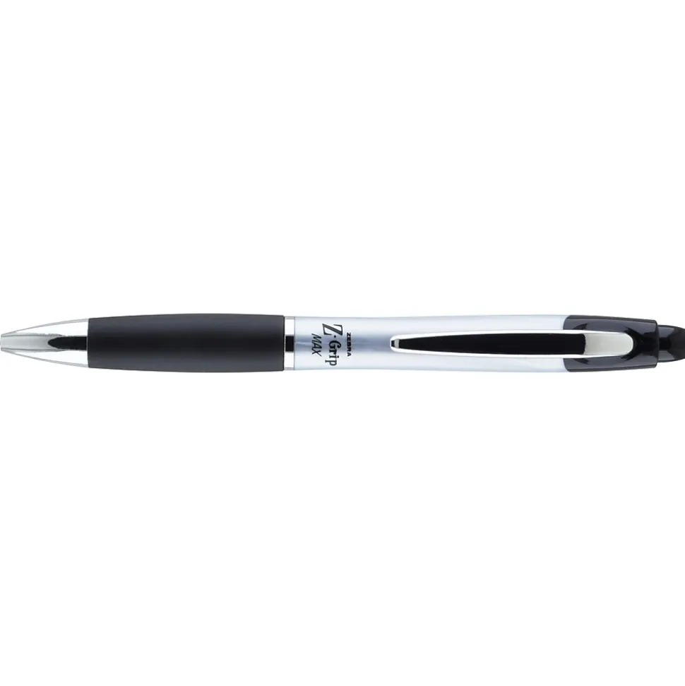 Maximize your writing experience with the Z-Grip Max retractable ballpoint pen. This retractable ballpoint pen features a wide comfort barrel with colored grip and colored push button to identify ink color at a glance.