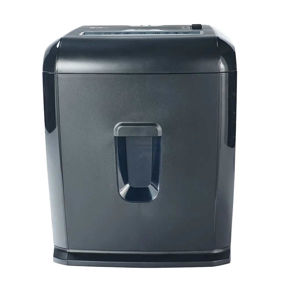 Shred quickly and securely with this Quill brand paper shredder. The compact design fits into small offices and cross-cuts paper to properly dispose of highly sensitive documents. Tackling up to 10 sheets at once and cutting through paperclips and credit cards, the shredder offers versatile function for homes and small businesses. Auto start and stop streamlines tasks, and a lockout key disables the blades for safe use around kids. The roomy waste bin lets you finish big jobs in one go.