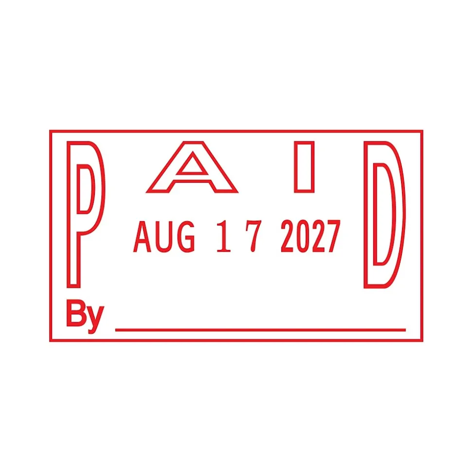 Compact red ink cartridge is simple to change and lasts for thousands of date and PAID impressions.