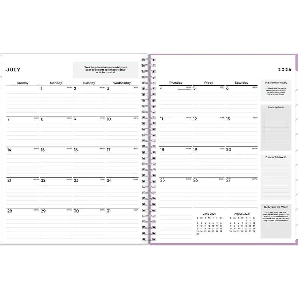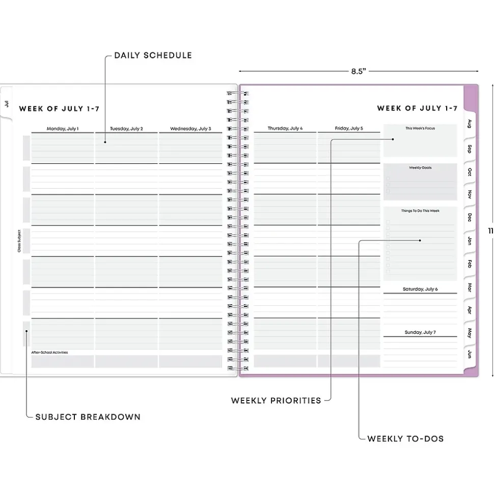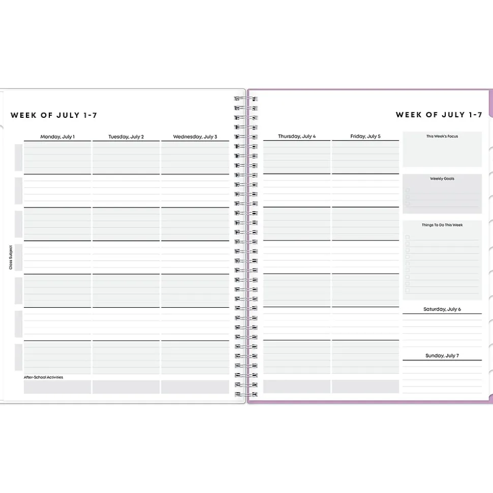 Create a study plan and stay organized with a student planner from Blue Sky. The Amethyst academic planner includes a class schedule page, weekly planning pages, monthly views with quotes, project and assignment trackers, and a storage pocket. Perfect for high school students, this 2024-2025 Blue Sky student planner helps you feel less stressed and ready to succeed.