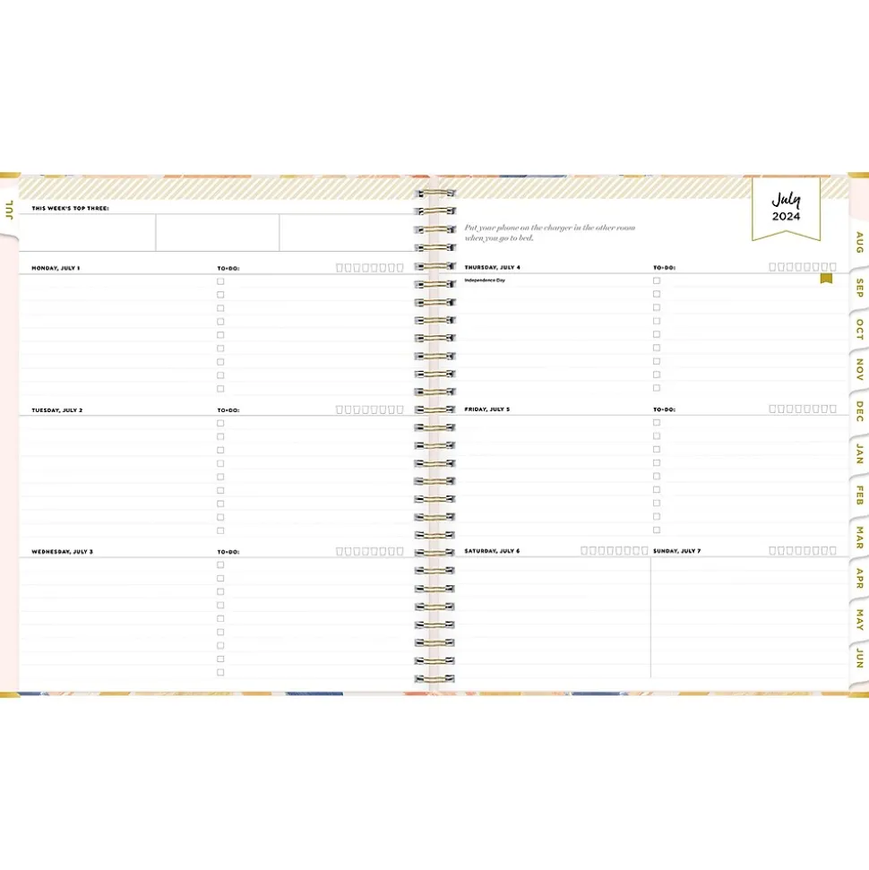 Design your year with Day Designer for Blue Sky academic planners. The In Bloom deluxe hardcover weekly and monthly planner has lined weekly views with room for your top three priorities, tabbed monthly calendars, and notes pages. Enjoy the storage pocket, stickers, and goal setting worksheets for a well-designed academic year.