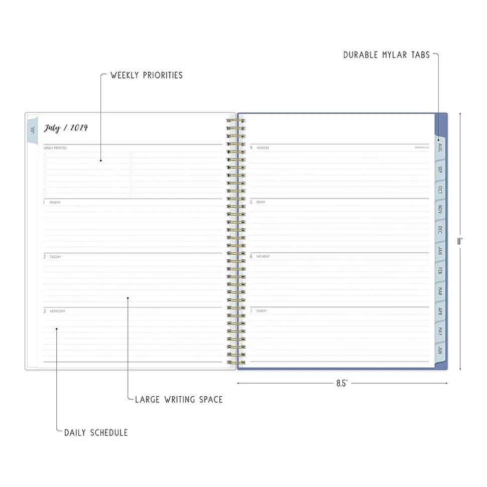 Ivory Paper Co for Blue Sky planners offer reading list, bucket list, and gratitude pages. A valuable tool to organize your days, the Julieanne large academic planner helps you set goals, track progress, and make the most of your time.