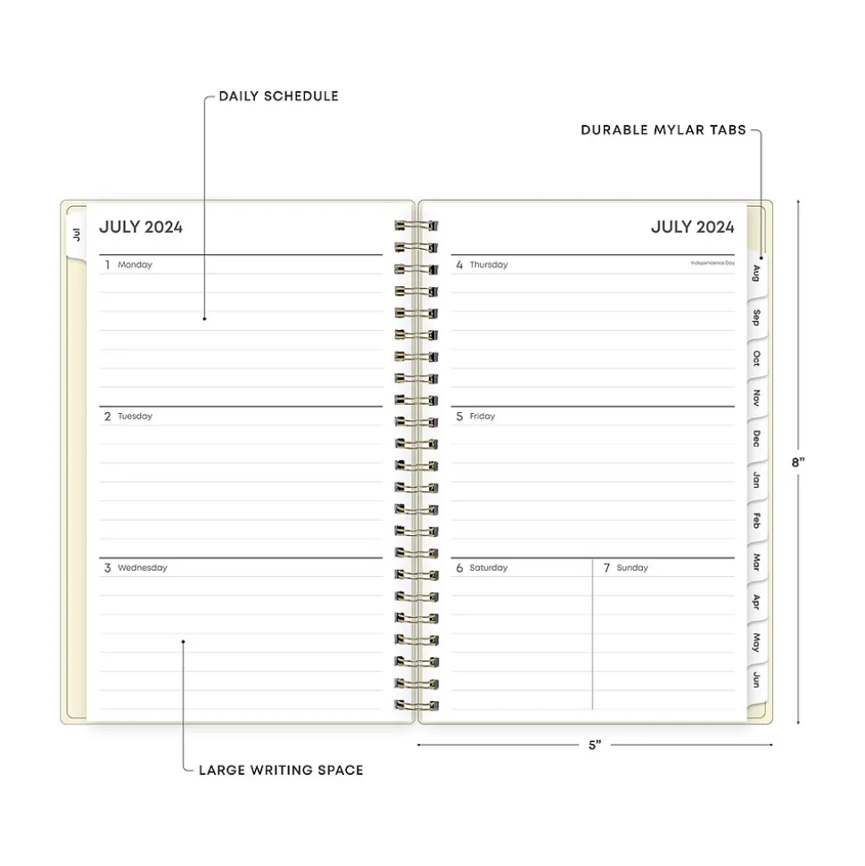 - Features two-page weekly and monthly spreads with space for notes and quick reference calendars