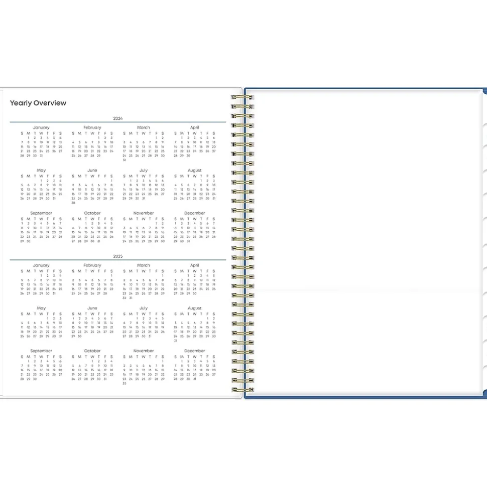 - Offers one month per two pages and one week per two pages, with space for notes and quick reference calendars