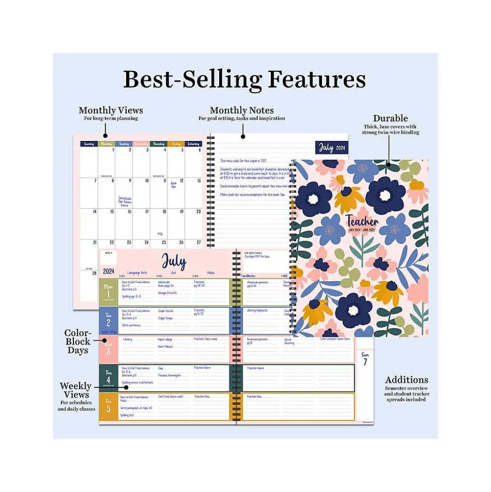 2024-2025 TF Publishing 8.5″ x 11″ Academic Weekly & Monthly Teacher Planner, Paperboard Cover, Multicolor (AY25-9600)