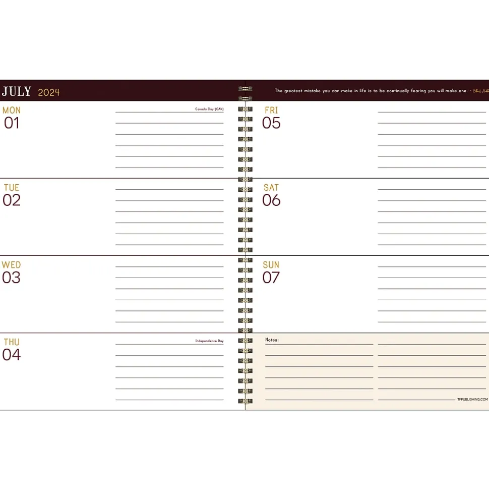This large Merlot weekly and monthly planner from the Bibliophile Series by TF Publishing combines sophisticated fashion with outstanding quality and functionality for your planning needs. The faux-tabbed pages allow for detailed scheduling and quick access. This planner will keep you organized and looking stylish everywhere you go.