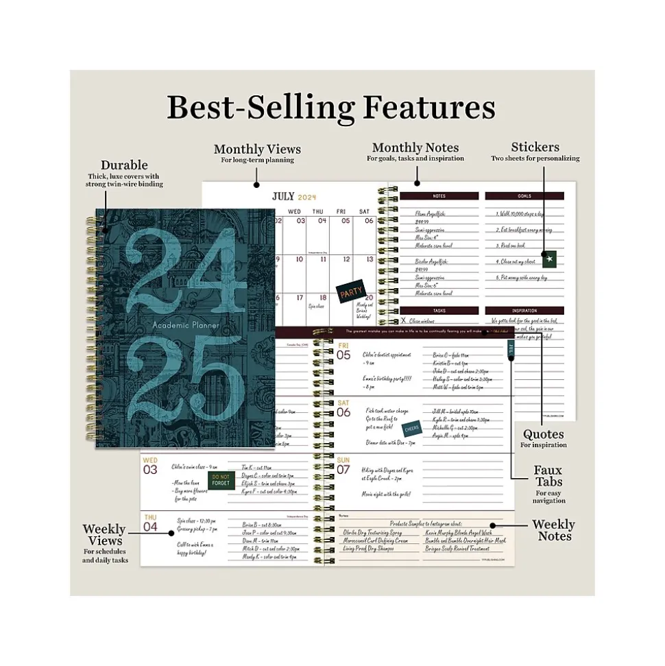 2024-2025 TF Publishing Bibliophile Series Mineral Fleur-De-Lis 6″ x 8″ Academic Weekly & Monthly Planner, Paperboard Cover