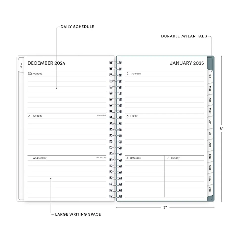 A simple planner for busy schedules. Organize tasks and time with the 2025 weekly and monthly Amitza Blue planner from Blue Sky. Use the ruled weekly layouts, tabbed monthly views, and notes pages to manage your schedule and achieve your goals.