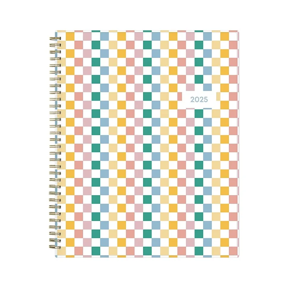 Organize tasks and time with the 2025 Blue Sky Checkerboard planner that includes a storage pocket. Use ruled weekly layouts, tabbed monthly views, and notes pages to manage your schedule and achieve your goals.