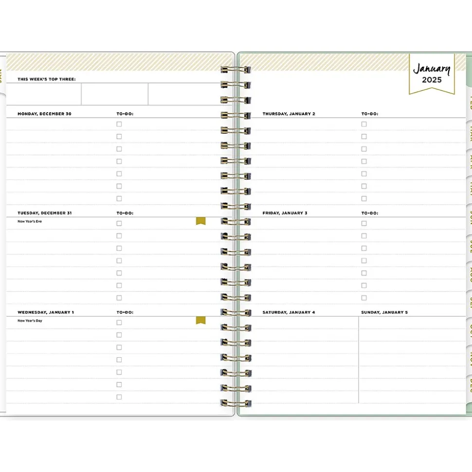 - Features two-page weekly and monthly spreads, with space for notes and quick reference calendars