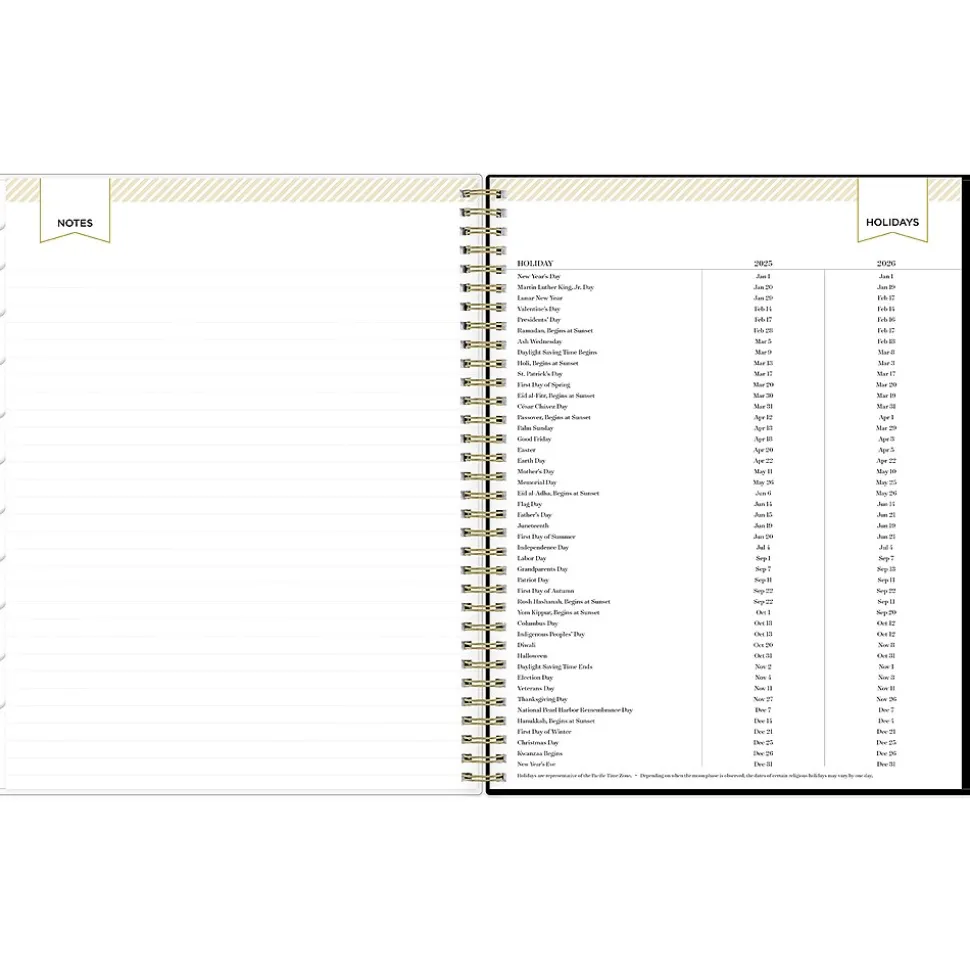 - Features two-page weekly spreads, with space for notes and quick reference calendars