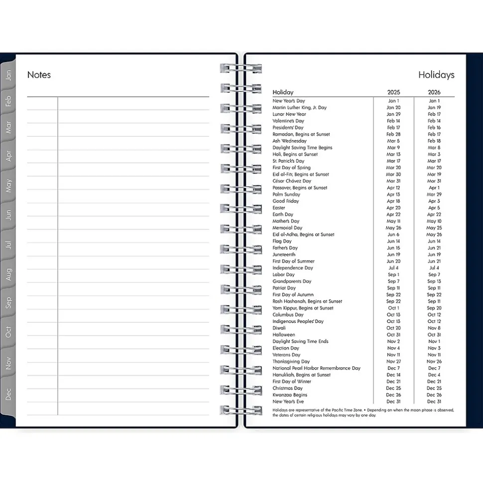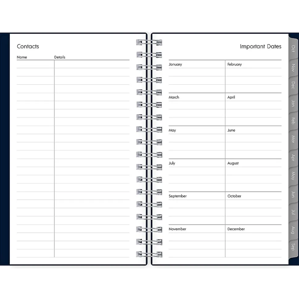 The 2025 Blue Sky Enterprise pocket planner has ruled weekly pages, tabbed monthly views, and notes pages. Use pages for your notes, goals, contacts, and important dates to stay organized.