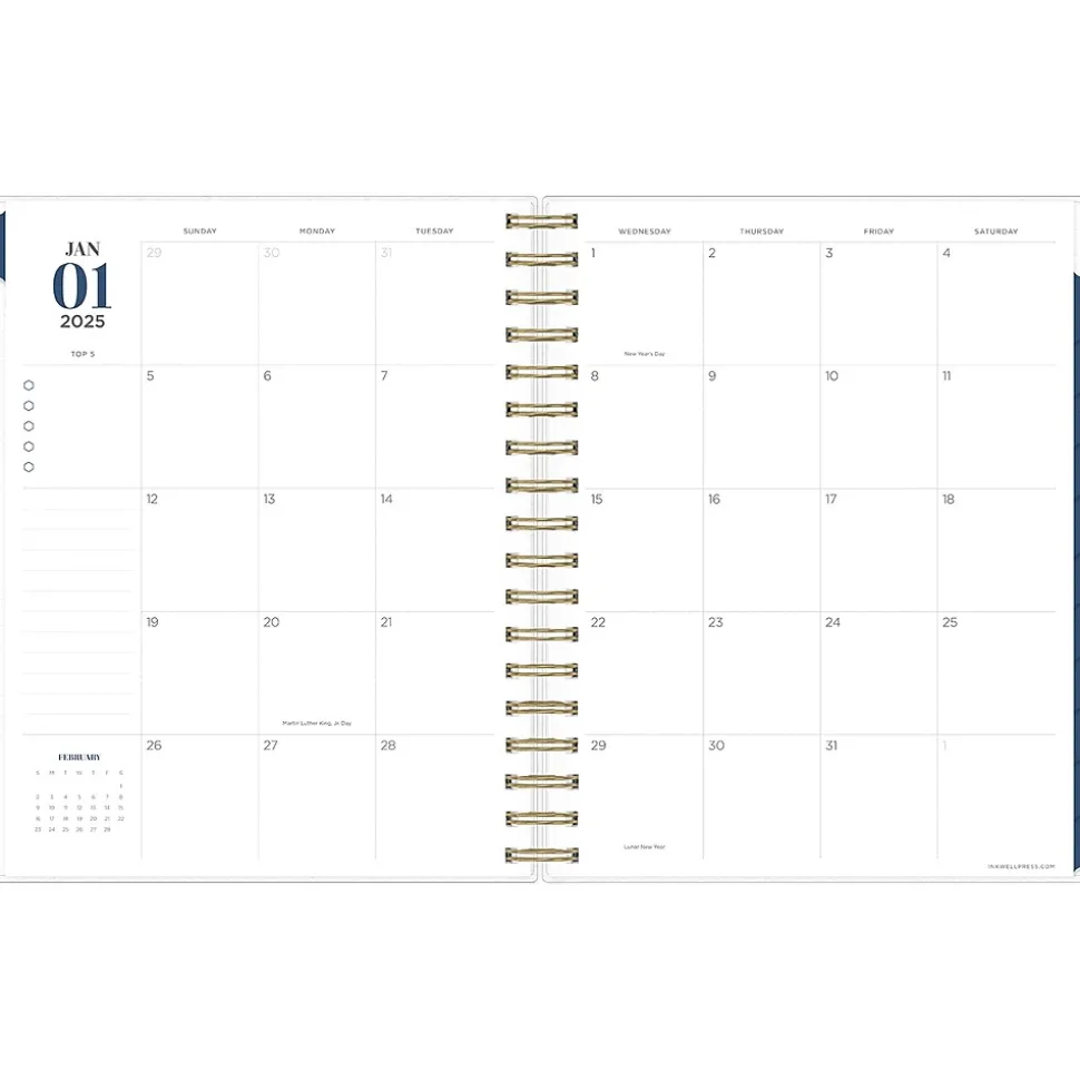 Achieve your goals with inkWELL Press for Blue Sky productivity planners, designed by time management expert Tanya Dalton. This Ombre Sky2025 planner includes the inkWELL Press flexible weekly layouts with tabbed monthly views and notes pages after every month. Use the goal-setting worksheets, monthly mission boards, and habit trackers to track your progress throughout the year. Includes stickers and a paper storage pocket.