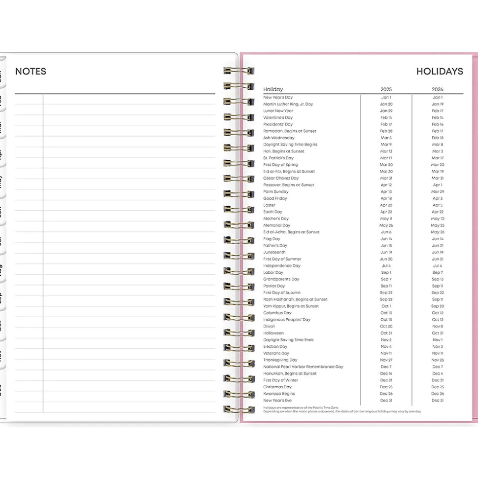 Organize tasks and time with a 2025 weekly and monthly planner from Blue Sky. The Juno Pink planner offers lined weekly layouts, tabbed monthly views, and notes pages to help you manage your schedule and achieve your goals.