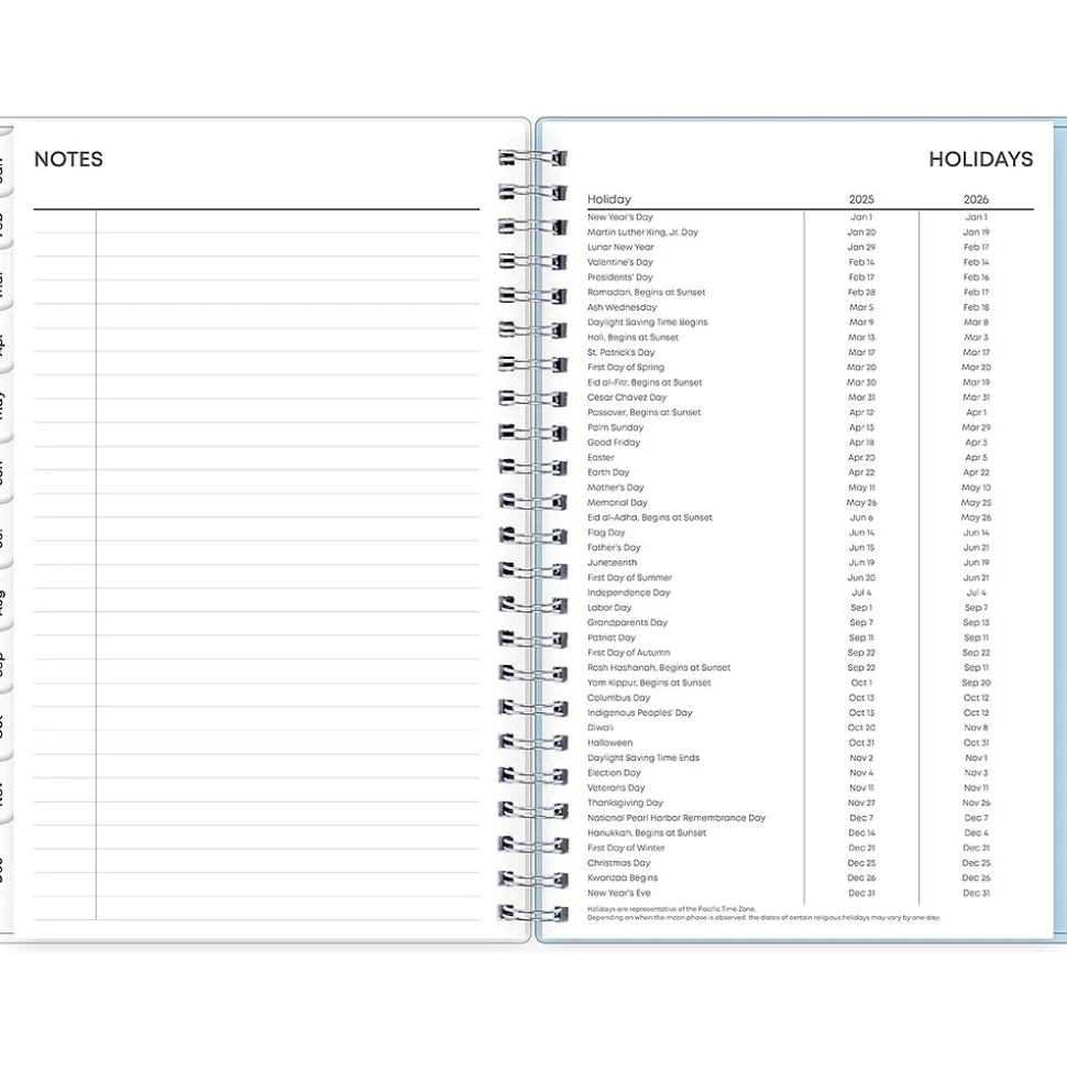 - Features two-page weekly and monthly spreads with space for notes and quick reference calendars