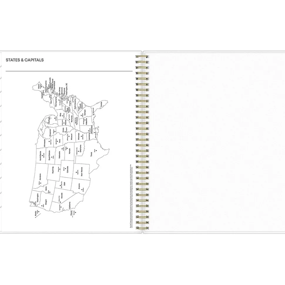 - Features one month per two pages and one week per two pages with space for notes and quick reference calendars