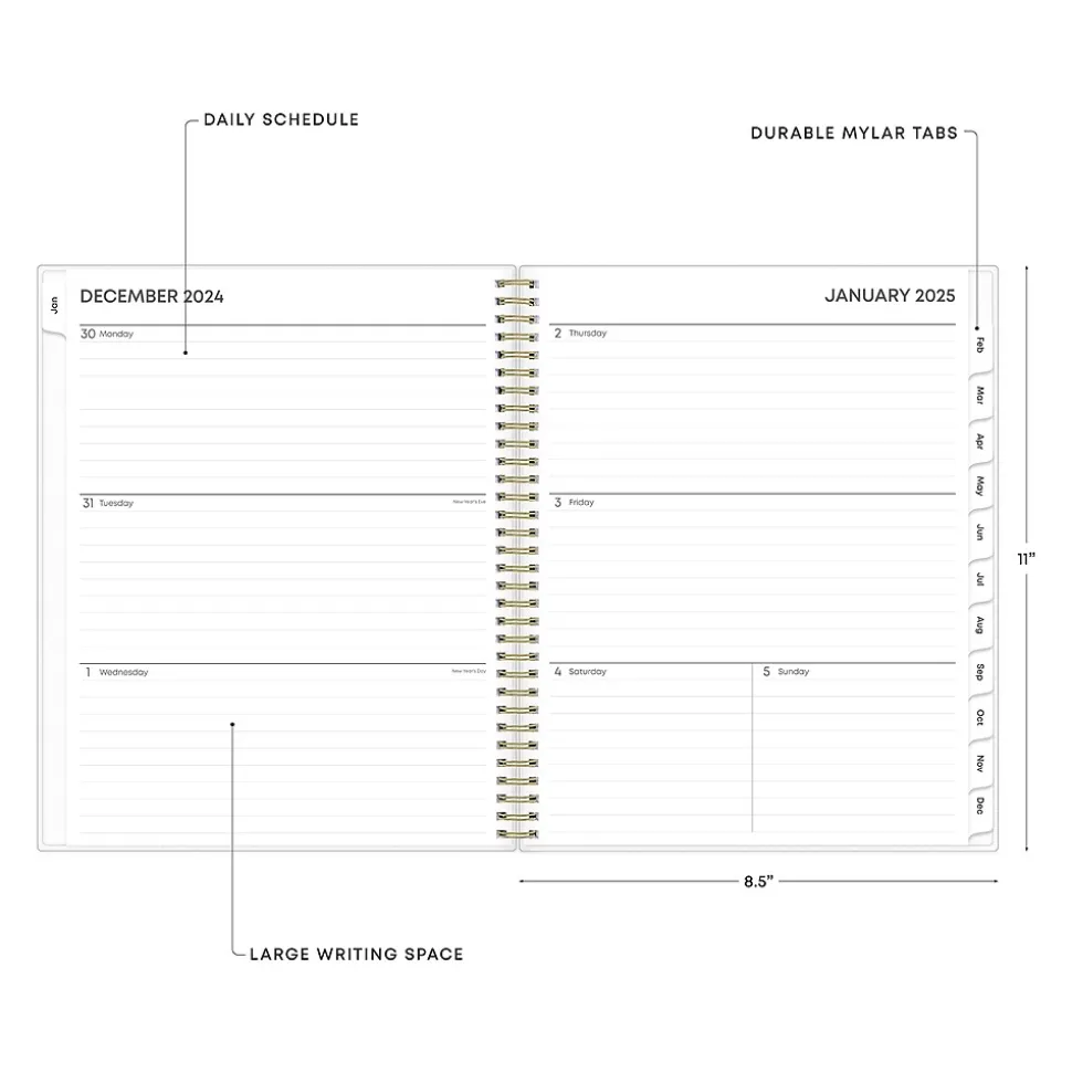A simple planner for busy schedules. Organize tasks and time with the Laurel weekly and monthly 2025 planner from Blue Sky that includes a storage pocket. Use weekly layouts, tabbed monthly views, and notes pages to effectively manage your schedule and achieve your goals.