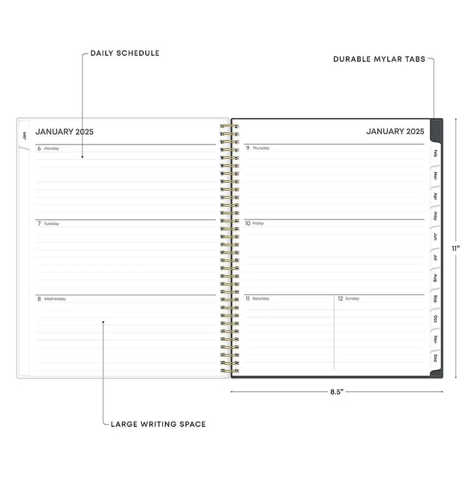 A simple planner for busy schedules. Organize tasks and time with the 2025 weekly and monthly Makeera planner from Blue Sky. Use weekly layouts, tabbed monthly views, and notes pages to effectively manage your schedule and achieve your goals.