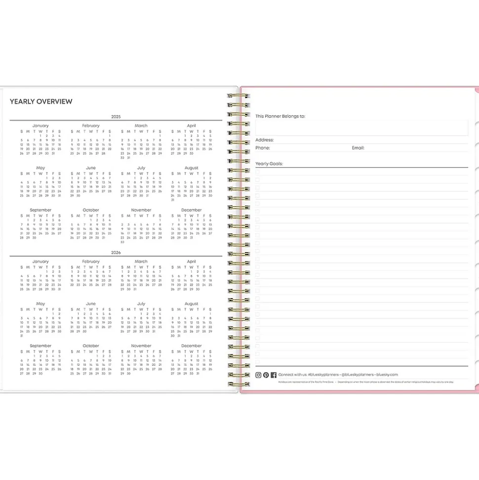 A simple planner for busy schedules. Organize tasks and time with the Mimi Pink weekly and monthly 2025 planner from Blue Sky that includes a storage pocket. Use weekly layouts, tabbed monthly views, and notes pages to effectively manage your schedule and achieve your goals.