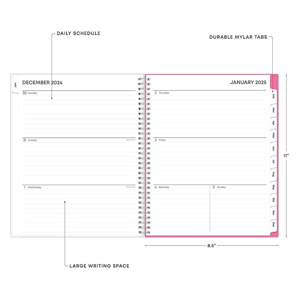 A planner that gives back and features a clear pocket cover. Organize tasks and time with the Orchid weekly and monthly 2025 planner from Blue Sky, designed in collaboration with breastcancer.org. Use the weekly layouts, tabbed monthly views, and notes pages to manage your schedule and achieve your goals.