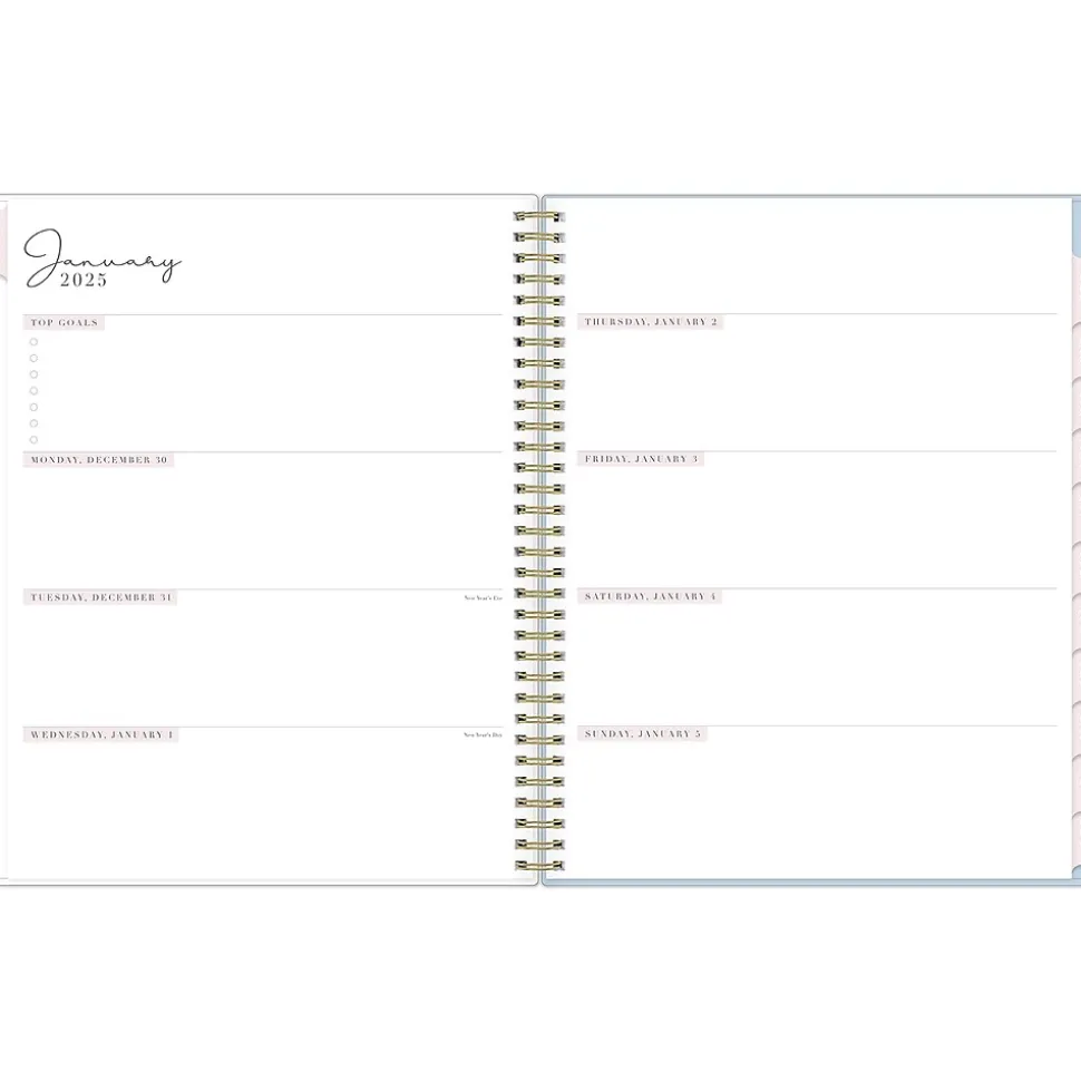Organize your tasks with the 2025 Parcella planner from Rachel Parcell for Blue Sky. It includes stickers and a storage pocket and features unruled weekly layouts, tabbed monthly views, and notes pages to help you manage your schedule.