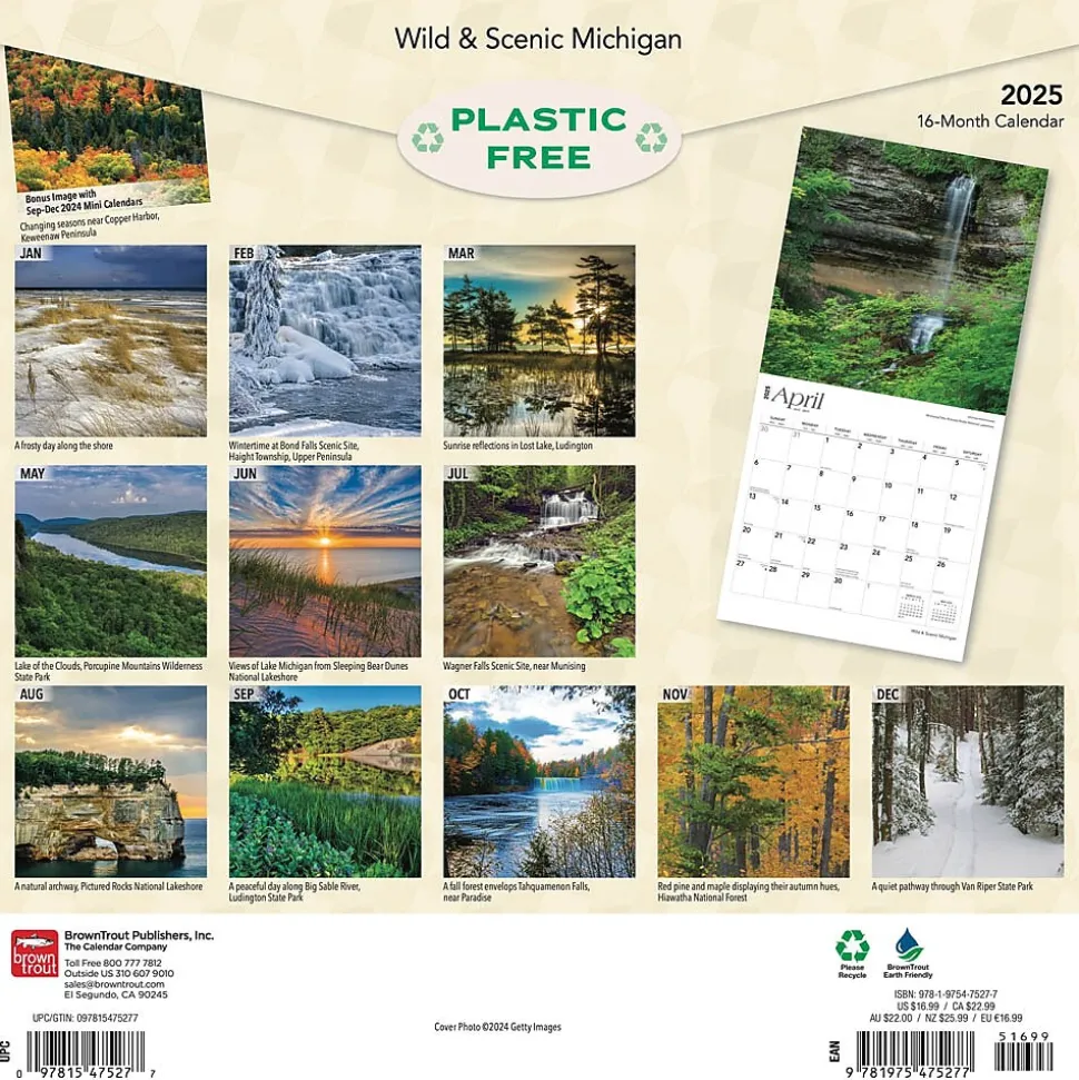 With the Great Lakes, lush greenery, tumbling waterfalls, and autumn leaves bursting in a blaze of color, Michigan boasts an array of beautiful natural scenes. Its miles of coastline and many forests make Michigan a paradise for nature lovers. This calendar features stunning photography that showcases the breadth and bounty of Michigan’s natural charms.