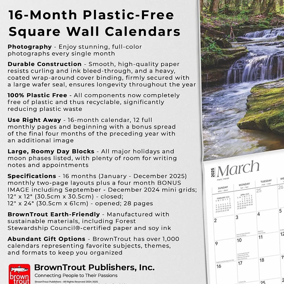 - BrownTrout Earth-Friendly – Manufactured with sustainable materials, including Forest Stewardship Council®-certified paper and soy ink