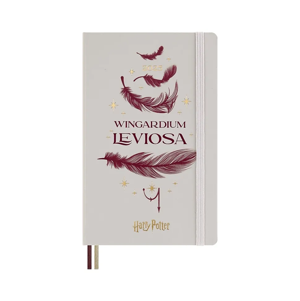 Unlock magic every day over the next year with this 12-month diary. This Moleskine Limited Edition Harry Potter Wingardium Leviosa weekly planner has a glow-in-the-dark cover and a memorable quote from the story inside. Flick through the pages to spot some important dates from the wizarding world, and grab your favorite pen to practice wand movements with the themed endpapers. Dated from January 2025 to December 2025, this Harry Potter diary has a weekly notebook layout to combine both planning and note-taking: each two-page spread shows the days of the week horizontally on the left, with a ruled page for notes, tasks, and thoughts on the right. The opening section includes a calendar and pages structured for travel planning and organization. Each diary and notebook in this collection features a spell that conjures up an iconic moment from the story. From tentative beginnings with Wingardium Leviosa to Protego Maxima and the epic final chapter. In the wizarding world, a spell is a form of expression that unlocks powerful magic, but for Harry Potter fans each familiar spell unlocks memories, evokes emotions, and provides inspiration. The real magic, of course, happens each time you express yourself with pen and paper. This diary is your everyday reminder that noting down plans by hand is the first step in making them come to life.